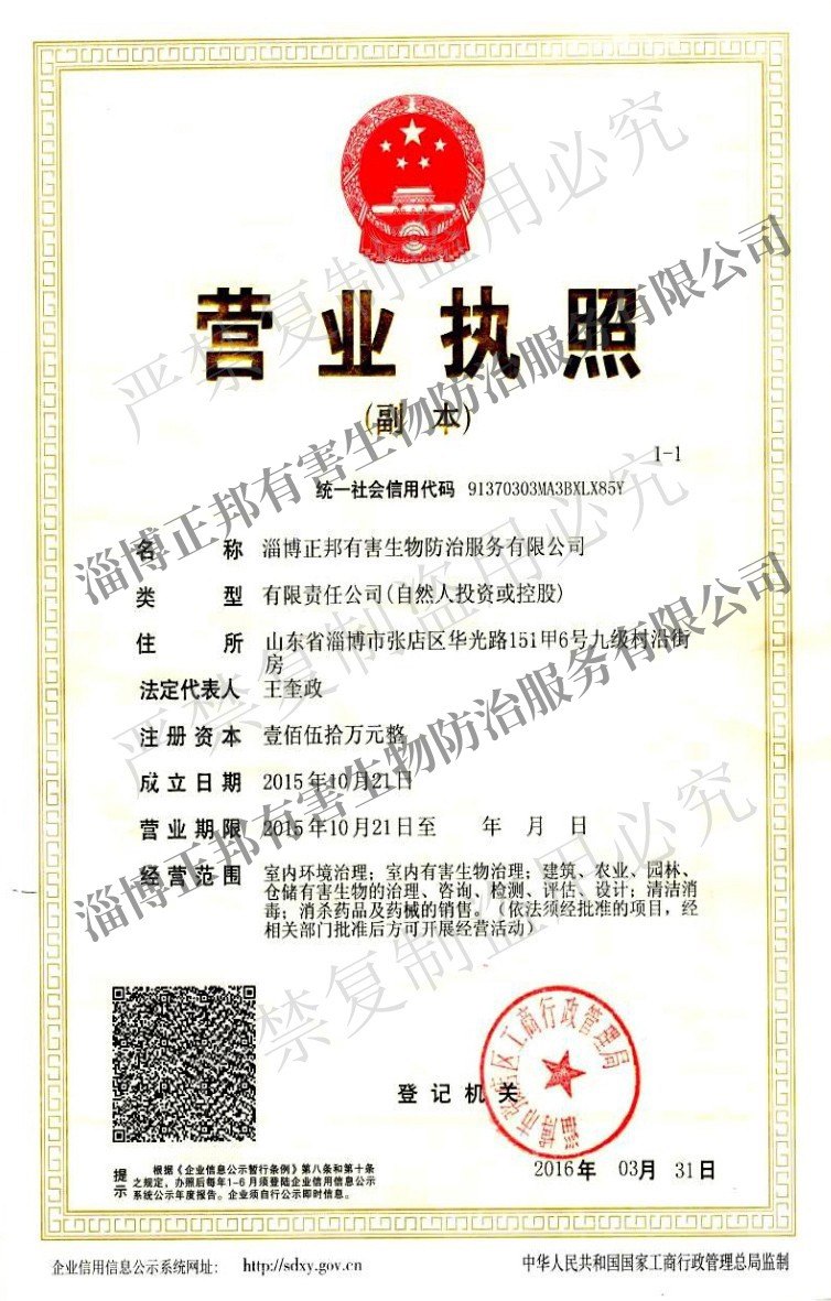 您好,歡迎訪問(wèn)正邦有害生物防治服務(wù)有限公司,是知名的淄博殺蟲公司,淄博滅老鼠公司,淄博滅蟑螂公司~